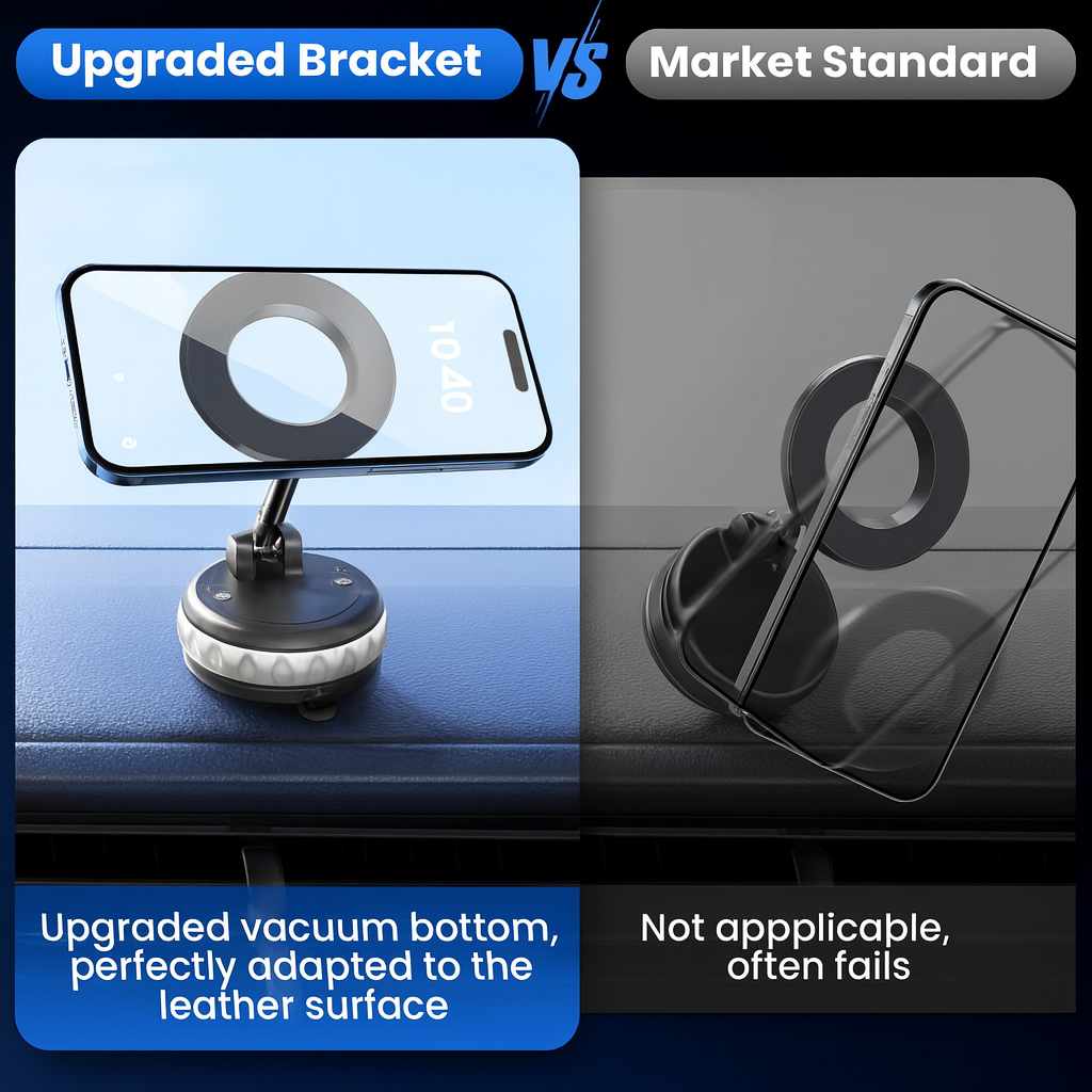 Our upgraded vacuum base ensures rock-solid stability on any surface — no more weak mounts or falling phones like standard holders.